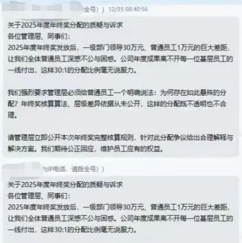 “我们普通员工平时每个月到手工资只有几千块,在上海根本不够生活,全靠年终奖补贴家用。”刘凯表示,2024年公司董事长换届,当年停发年终奖时,公司管理层给出的理由是“中投公司有新规定,奖金发放不得超过公司利润的6%,未发的奖金公司会为大家争取”,但一年过去,公司2024年的年终奖励依旧没有落实,2025年的奖励也遭到了大幅度的削减,与公司近年来较为稳定的经营业绩形成了鲜明的反差。
